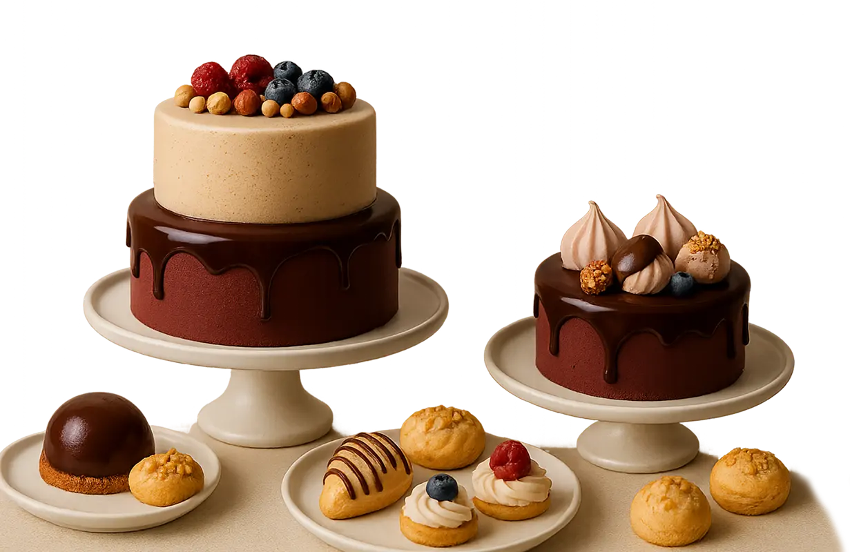 Погрузитесь в мир вкусов с нашими свежими тортами, пирожными и десертами, приготовленными с любовью и качественными ингредиентами